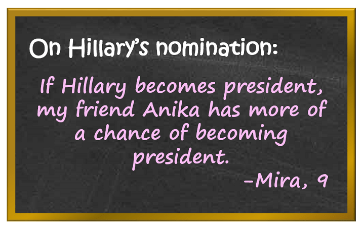 If Hillary becomes president, my friend Anika has more of a chance of becoming president. (I want to be an artist so I won’t be running for president anytime soon.)